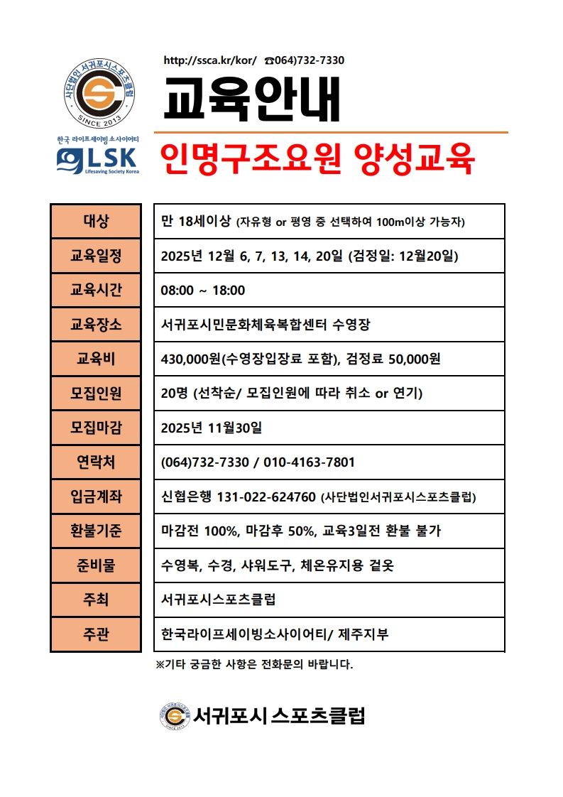 「2025년 인명구조요원 양성교육 참여자 모집」